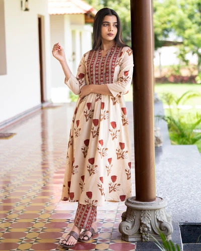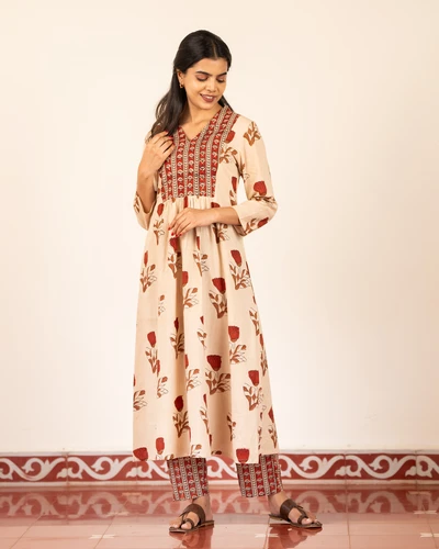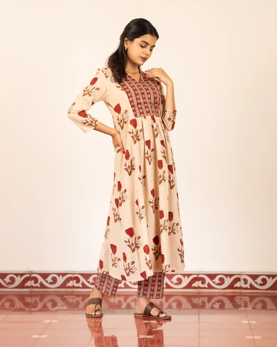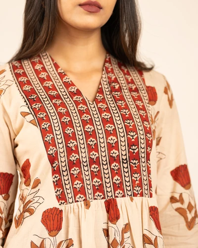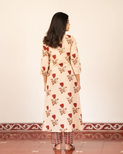 Bagru Beige Kurta Set