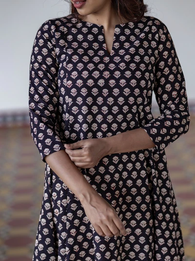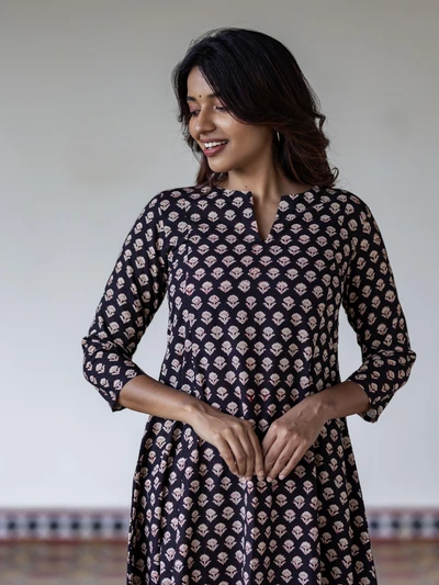 Black Floral Handblock Kali Kurta