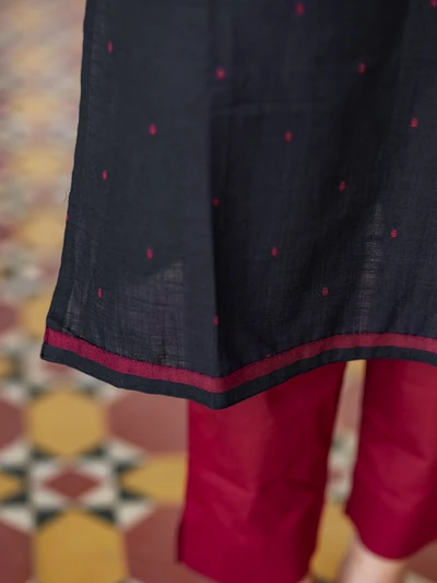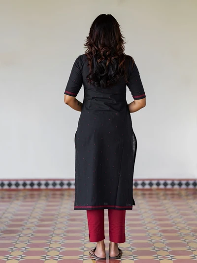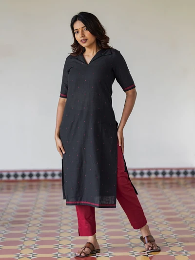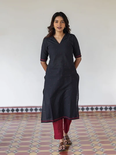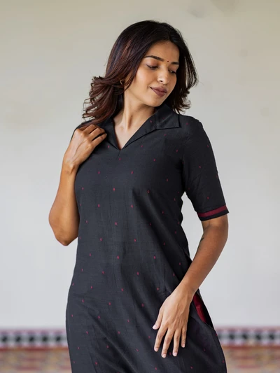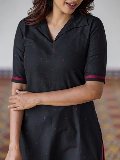 Black Handloom Collared Kurta