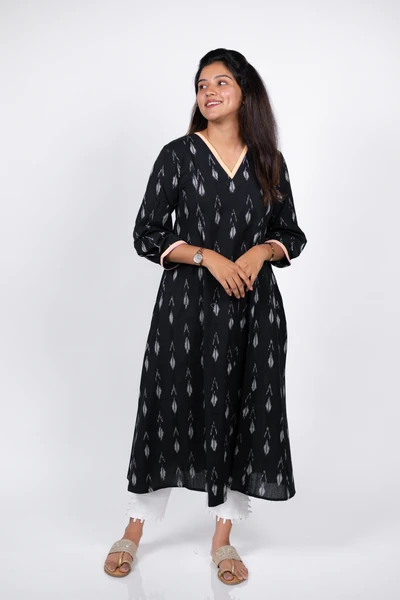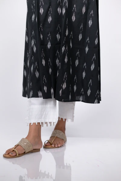 Black Sesame Ikat Handwoven A-Line Kurta