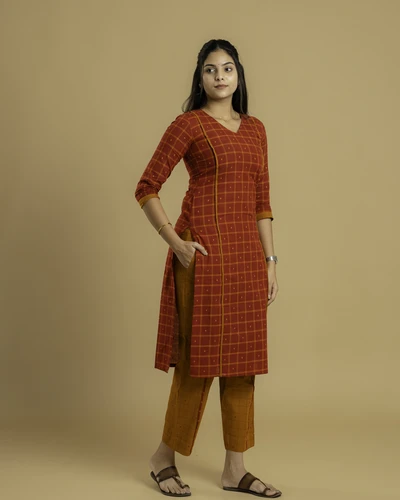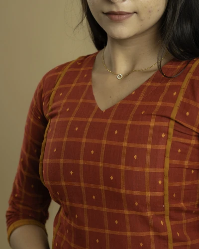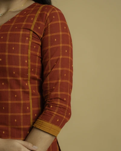 Sindoor Checks Handloom A-Line Kurta Set