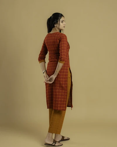 Classic Maroon Mustard Checks Kurta Set