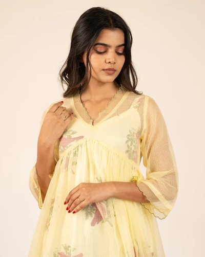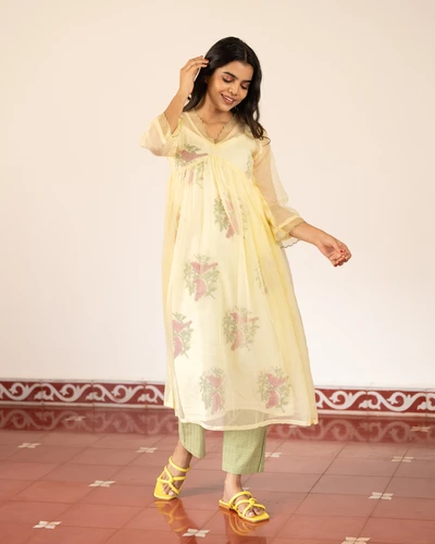 Starfruit Vine Handloom Embroidered A-Line Kurta Set