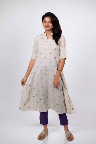 Ivory Lilac Handloom Kali Kurta