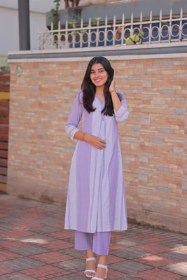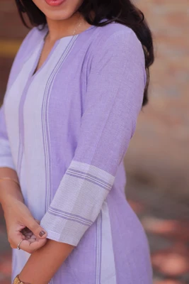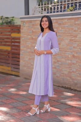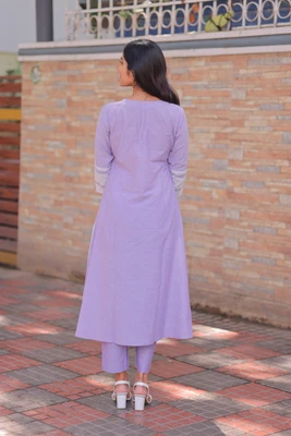 Lavender Handloom A-Line Kurta Set