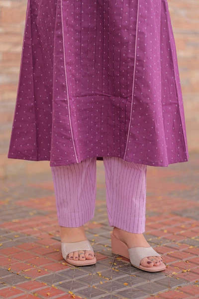 Pink Smoke Ikkat Kurta Set With Dupatta