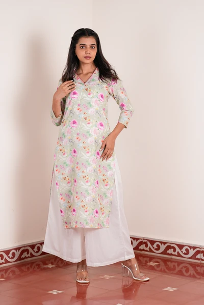 Pink Floral Linen Kurta