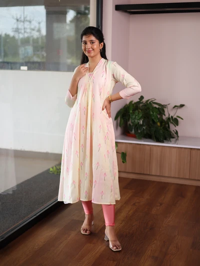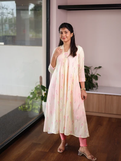 Ivory Lilac Handloom Kali Kurta