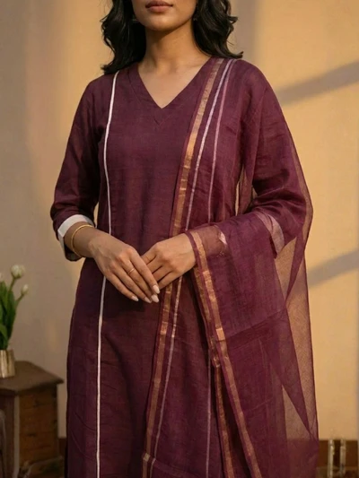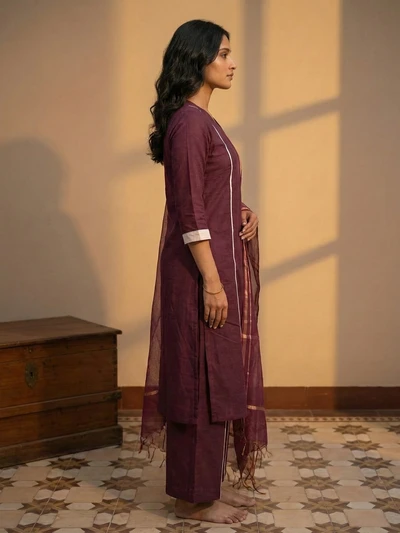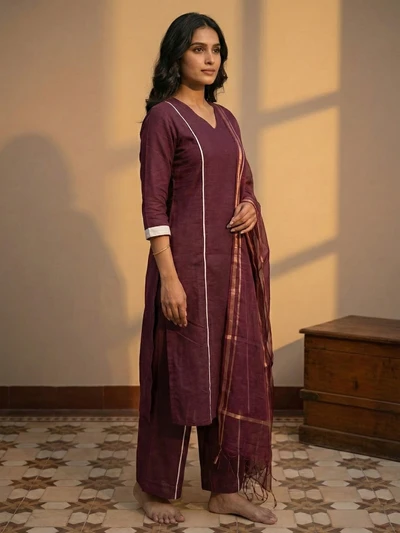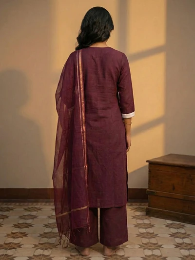 Magenta Glow Solid Co-ord Set WIth Dupatta