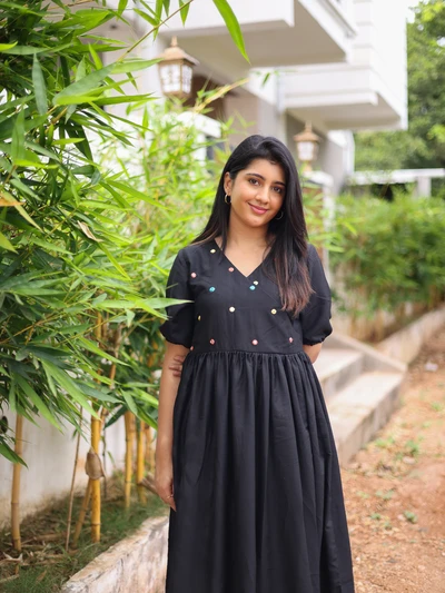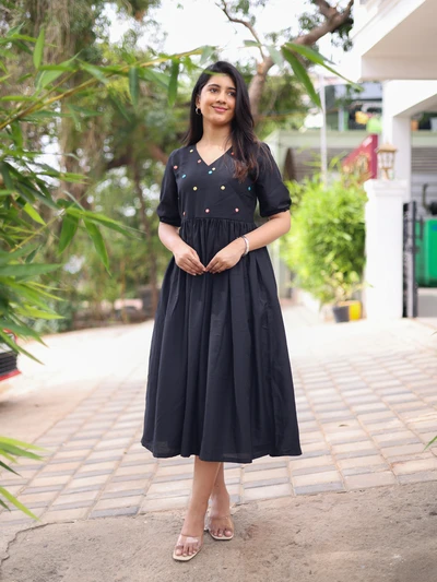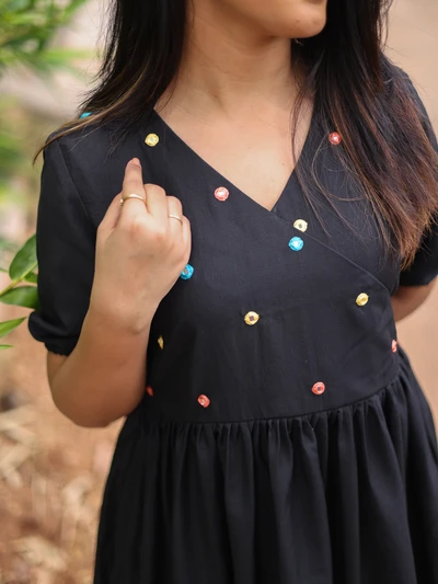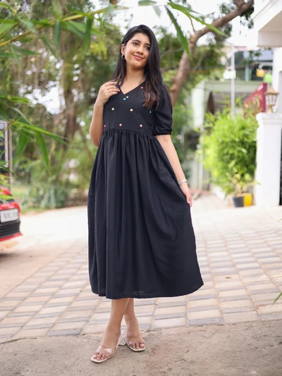 Midnight Muslin Mirror Work Dress