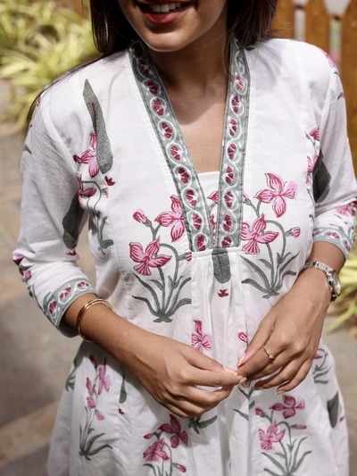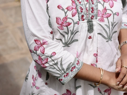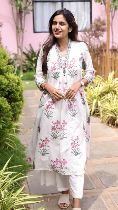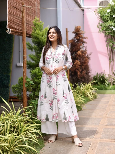 Ivory Lilac Handloom Kali Kurta
