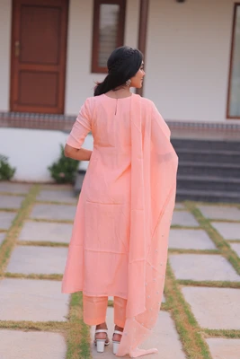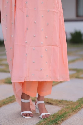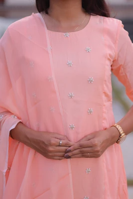 Peach Bloom Embroidered A-Line Co-ord Set With Dupatta