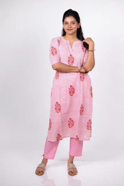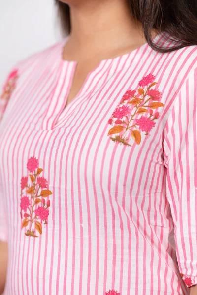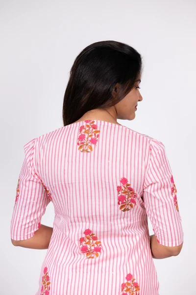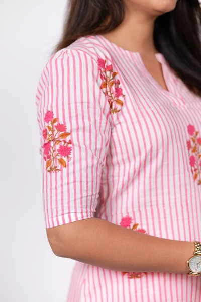 Pink Blossom Stripe Kurta