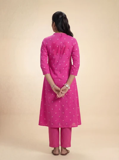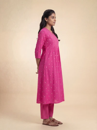 Pink Plum Handblock A-Line Kurta Set