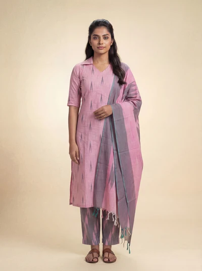 Pink Smoke Ikkat Kurta Set With Dupatta