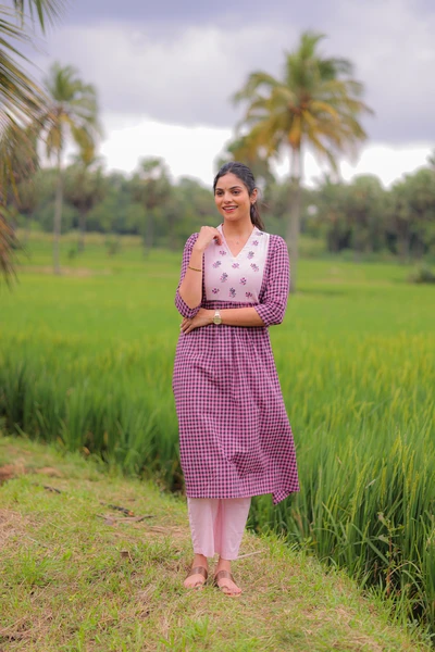 Pink Plum Handblock A-Line Kurta Set