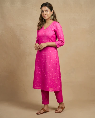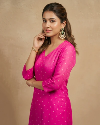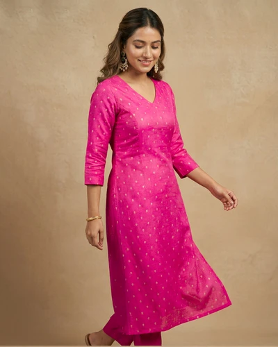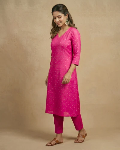 Rani Pink Banaras A-Line kurta
