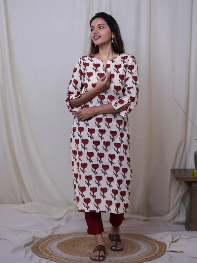 Rustic Charm Handblock Cotton Kurta