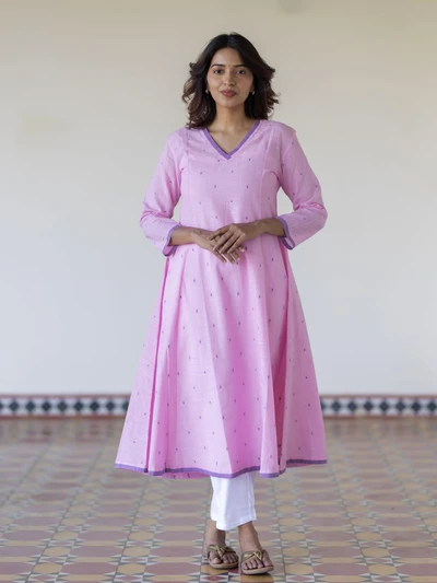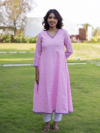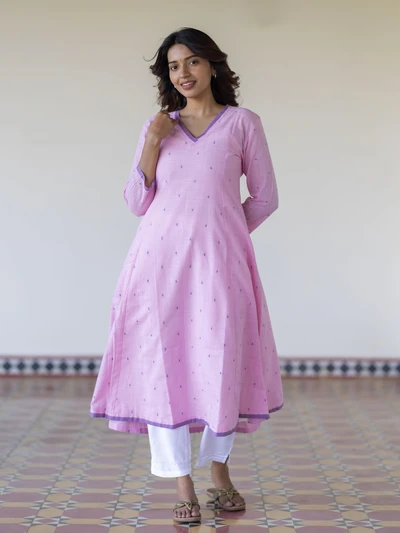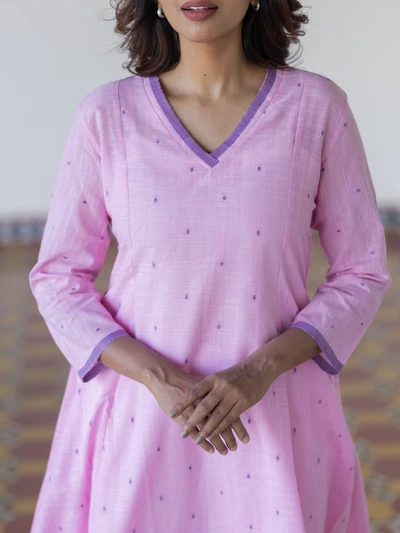 Lavender Lychee Handloom A-Line Kurta