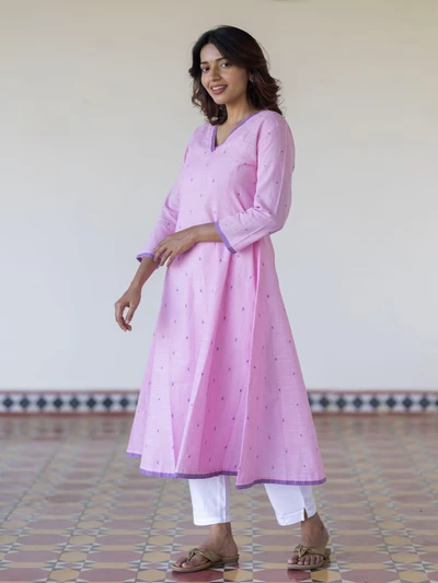 Soft Pink Handloom Kali Kurta