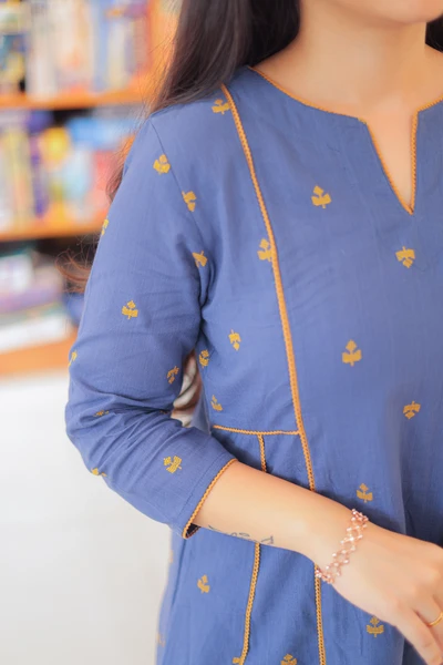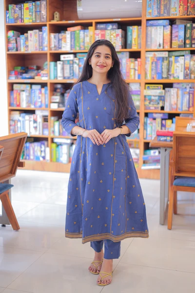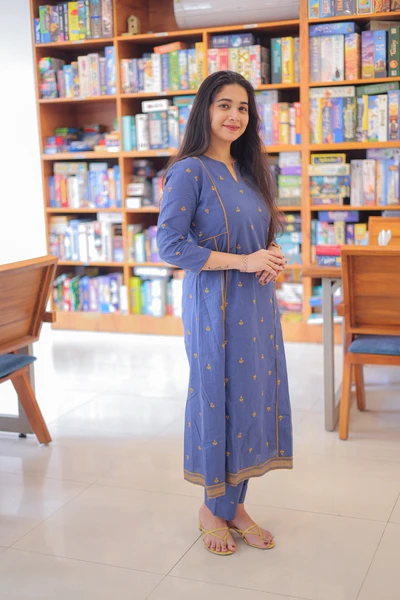 Blue Dusk Handloom A-Line Kurta Set
