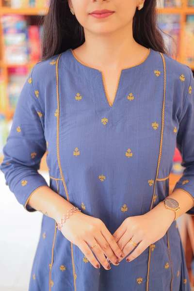 Steel Blue Butta Handloom A-Line Kurta Set