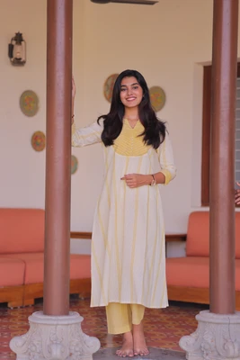 Sunbeam Stripes Handloom A-Line Kurta Set