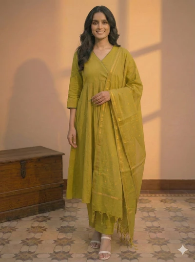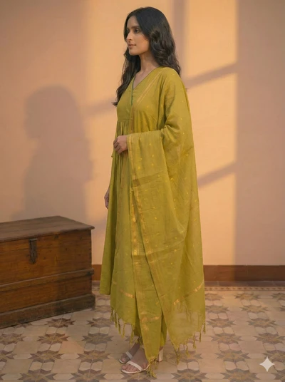 Turmeric Twist Handloom A-Line Co-ord Set With Dupatta