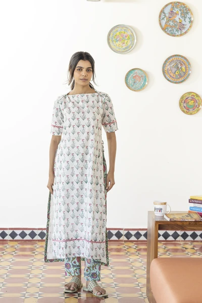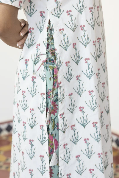 White & Sage Blue Kurta