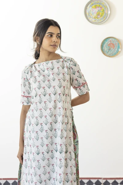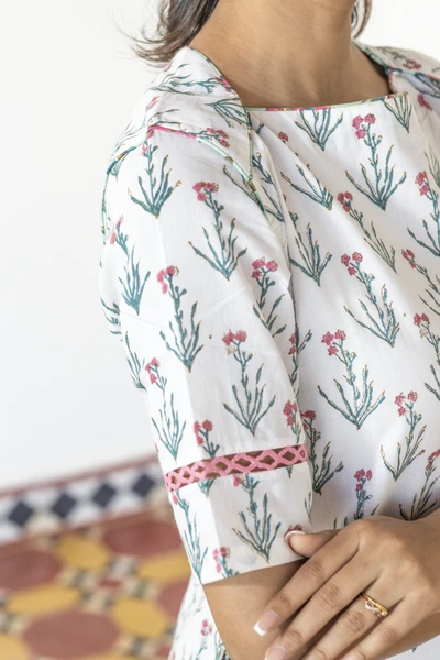 Pink Floral Linen Kurta