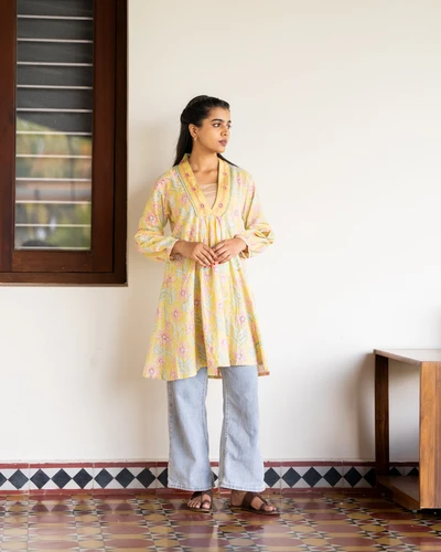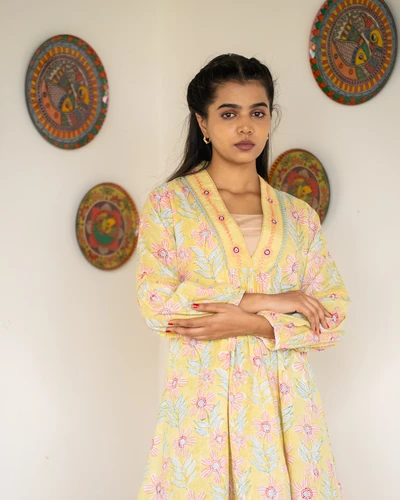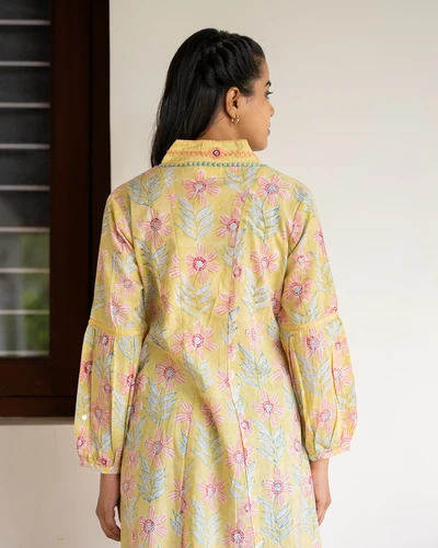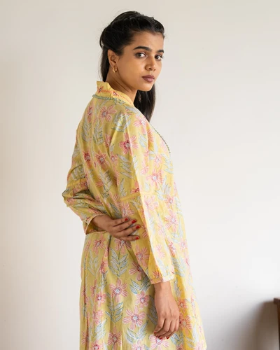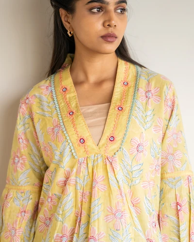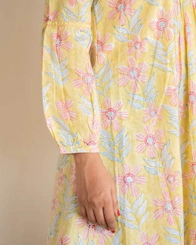 Yellow Hand Block Print Kurta