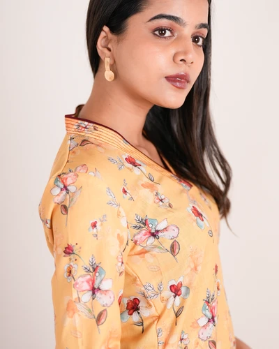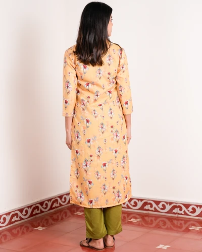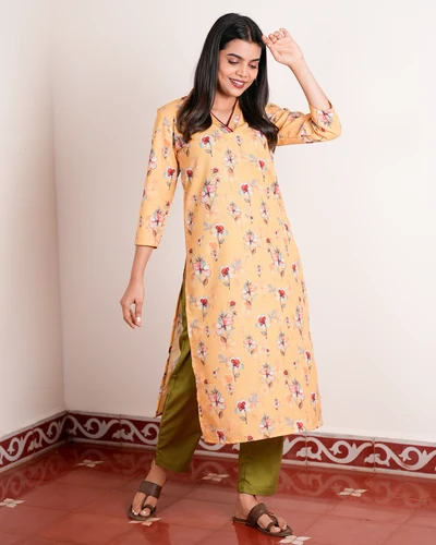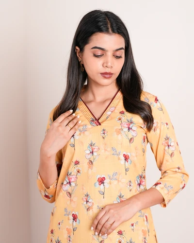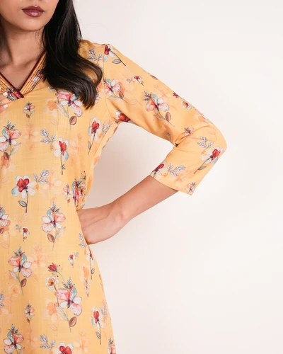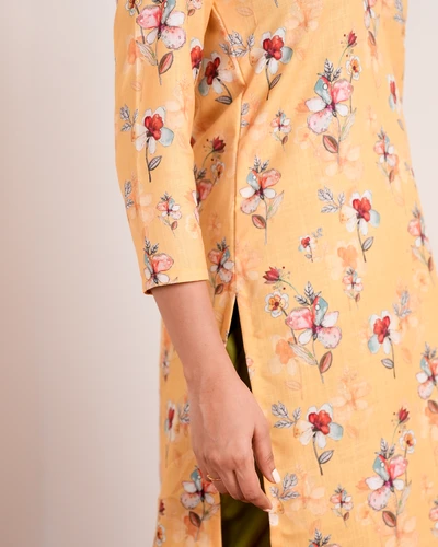 Yellow Linen Floral Kurta