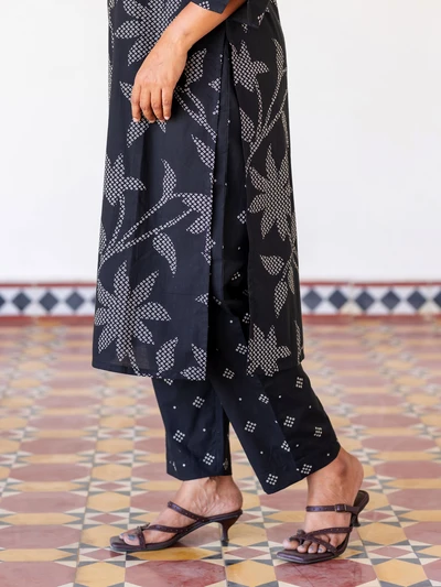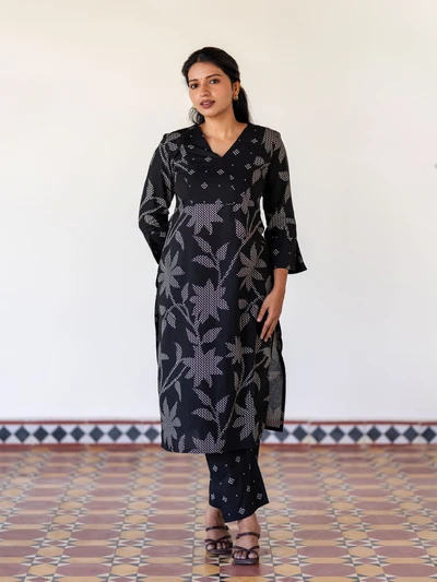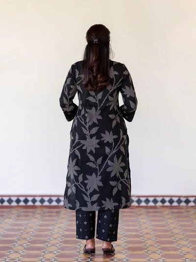 Navy Check Chungidi With Lavender Peacock Border Kurta Set With Dupatta
